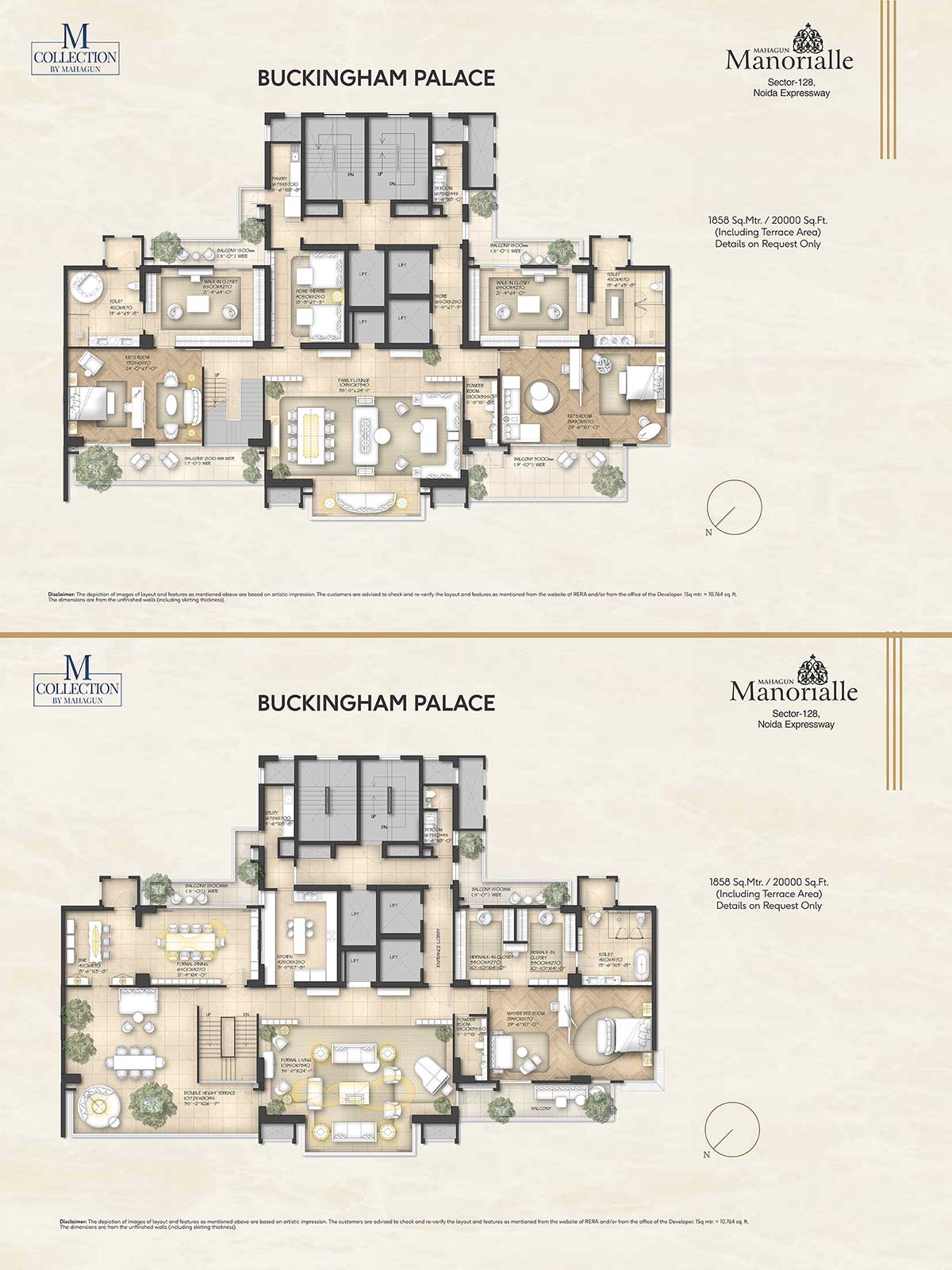 Mahagun Manorialle offers high-end premium 3/4/5 BHK condominiums where each room is designated to offer space, comfort, and stunning views. An abundance of space inspires you to relax and unwind while the smashingly chic design elevates your mood every time you enter.