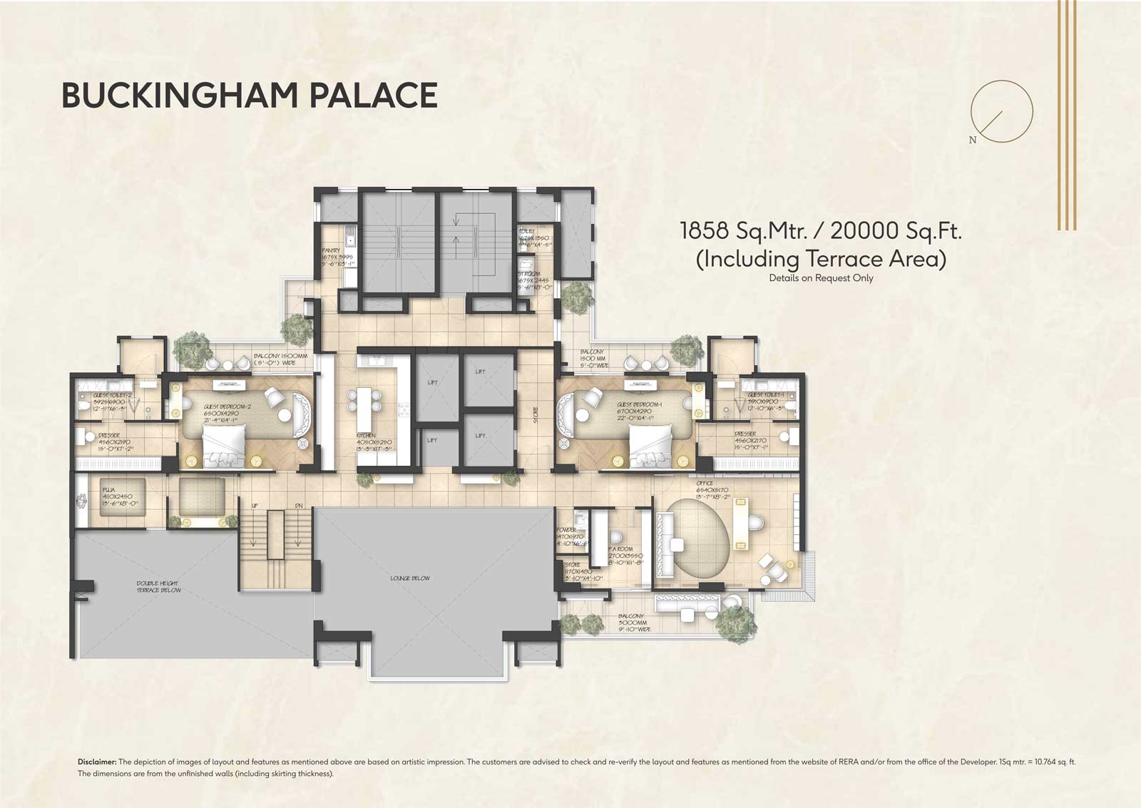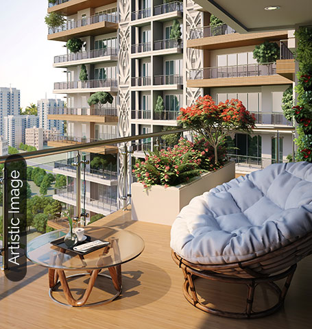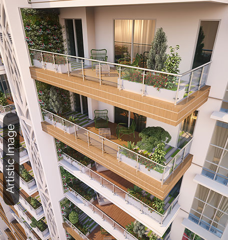 10 feet wide landscaped sprawling balconies are fit to be called sky lounges. The garden deck has the backdrop of an amazing golf course view and is ideal for entertaining guests, meeting friends, and for leisure activities.
